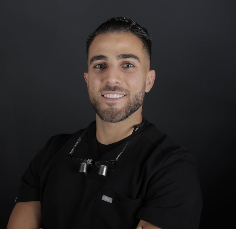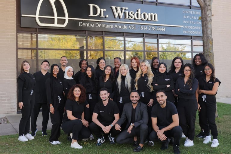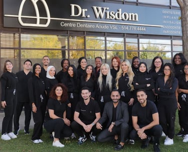 Dentiste pratiquant au Centre Dentaire Dr. Wisdom Aoude VSL à Montréal, soutenu par une équipe incroyable.